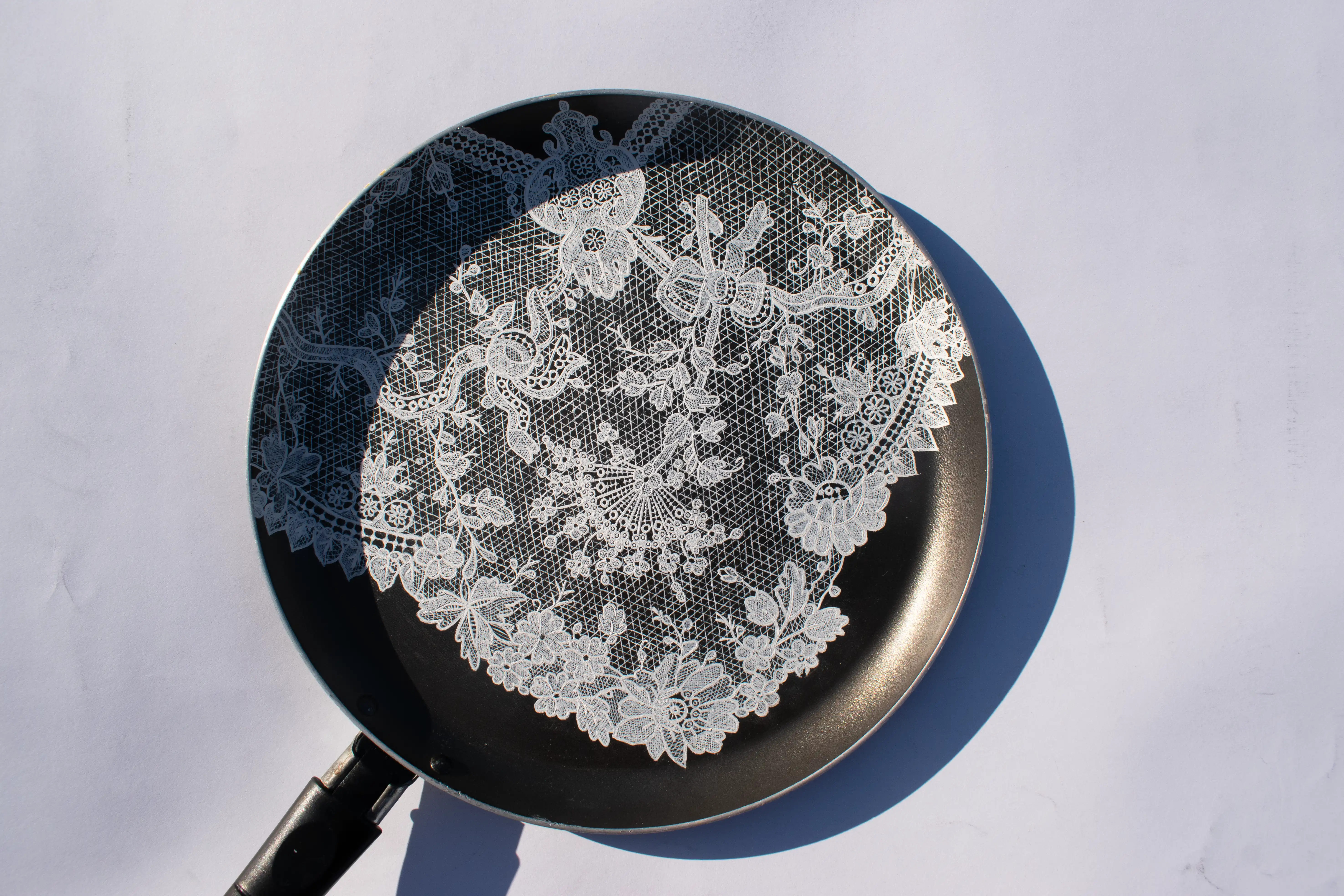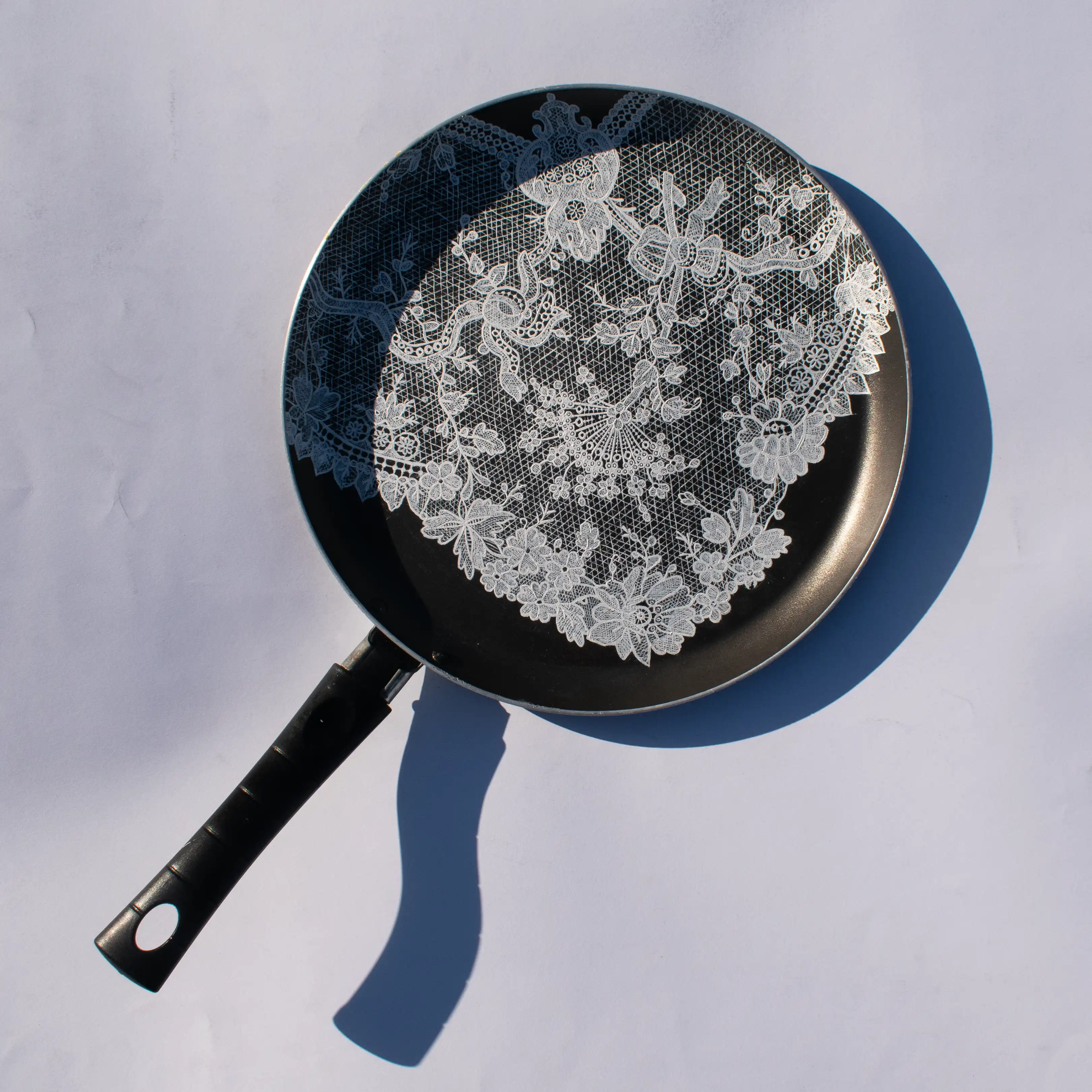 Part of a project called "The Woman at the Pan", taking on the archaic view that a woman's place is in the kitchen.